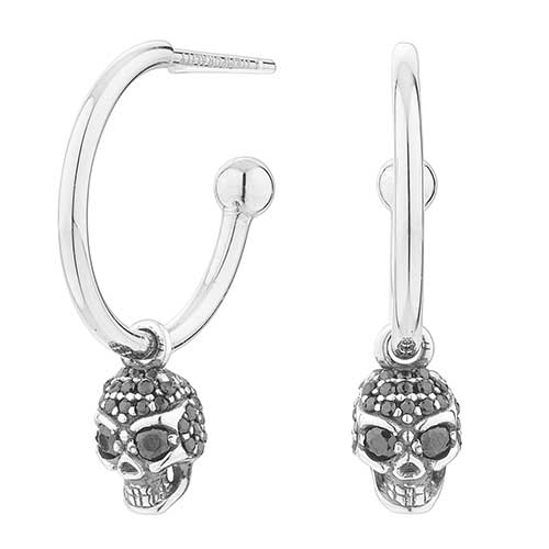 Pendientes Plata Aro Calavera Circonitas Negras Sea-102-057-UU