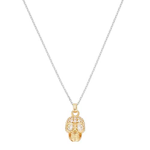 Collar Plata Calavera Dorada Circonitas SNL-201-008-01