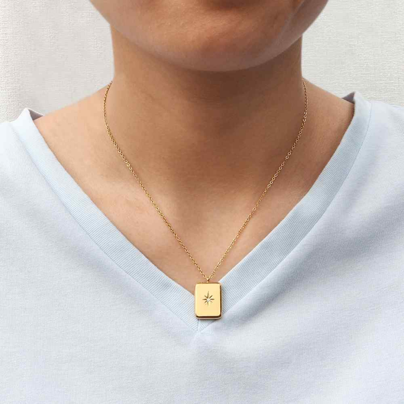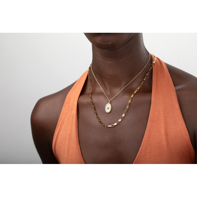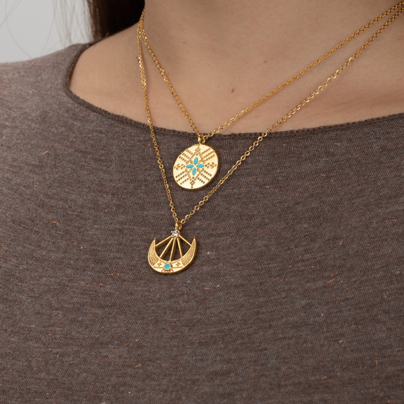 Collar Acero Dorado Milagrosa Esmalte Turquesa