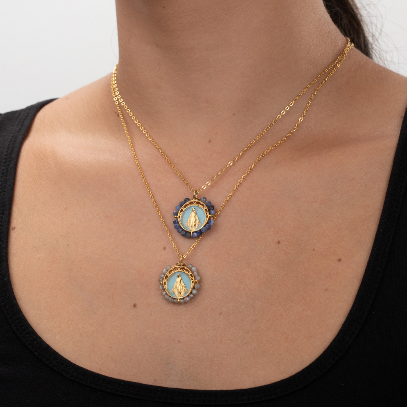 Collar Acero Dorado Milagrosa Esmalte Azul
