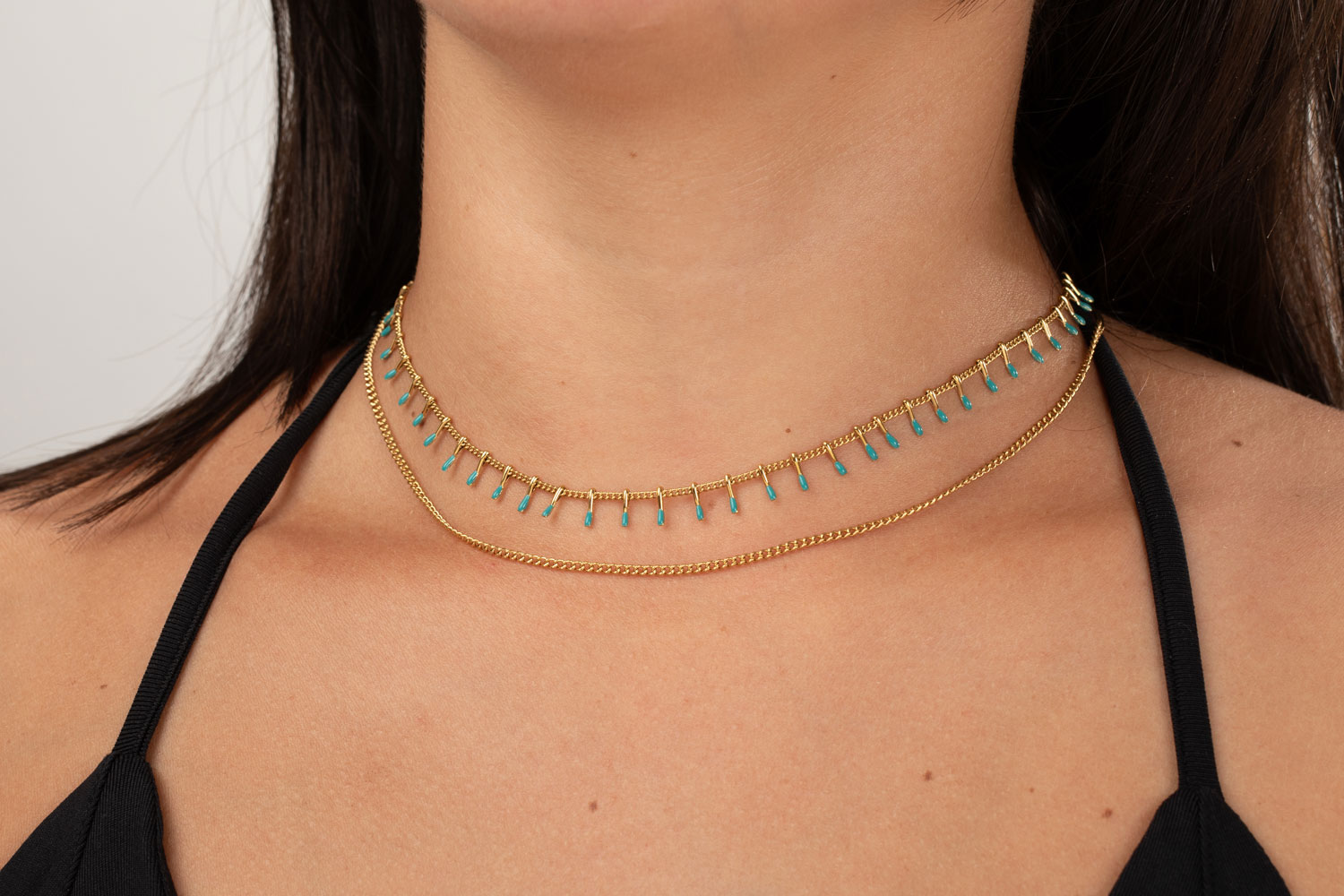 Collar Plata Baño de oro Pinza Marina Circonitas