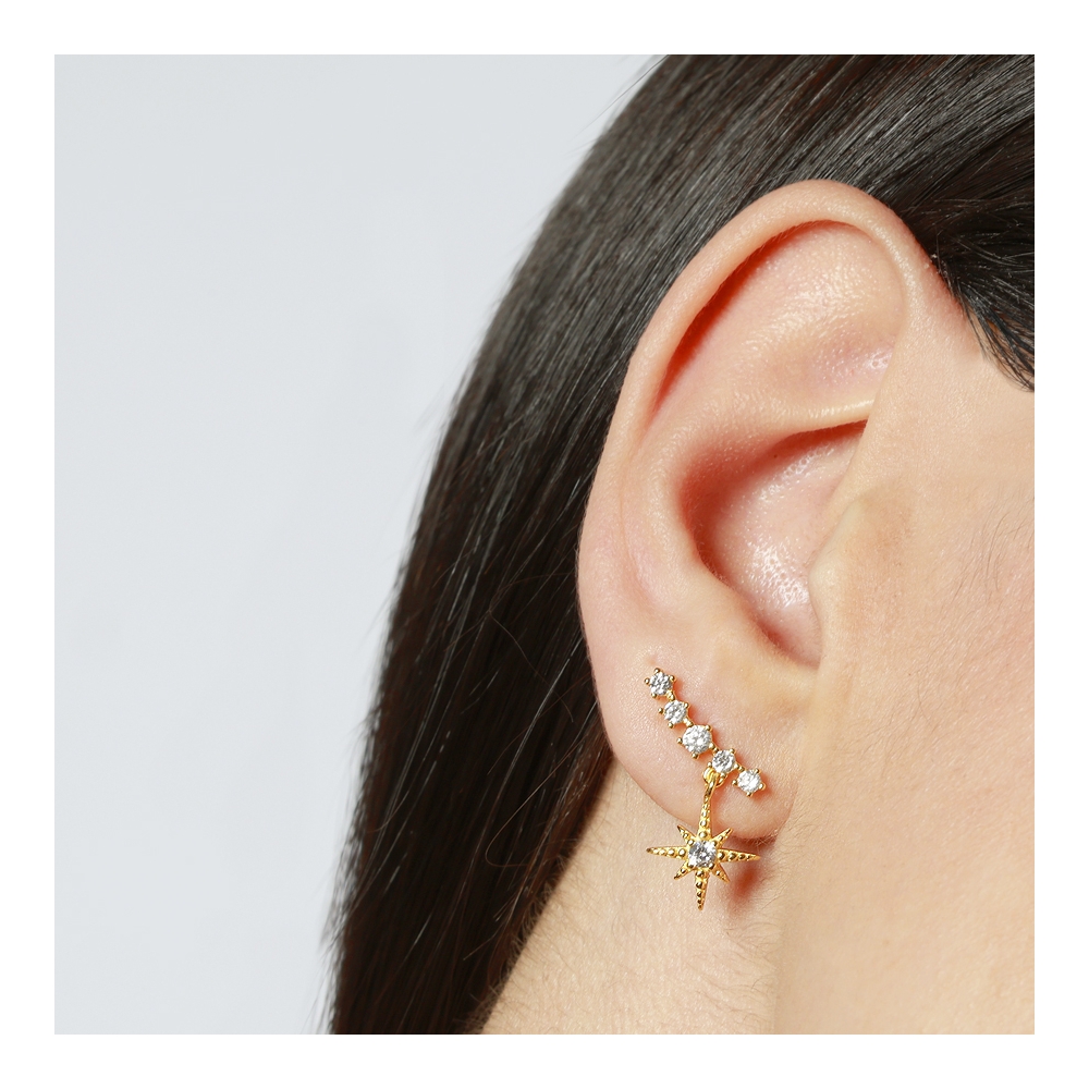 Pendientes Plata Trepadores Linea y Estrella Circonitas