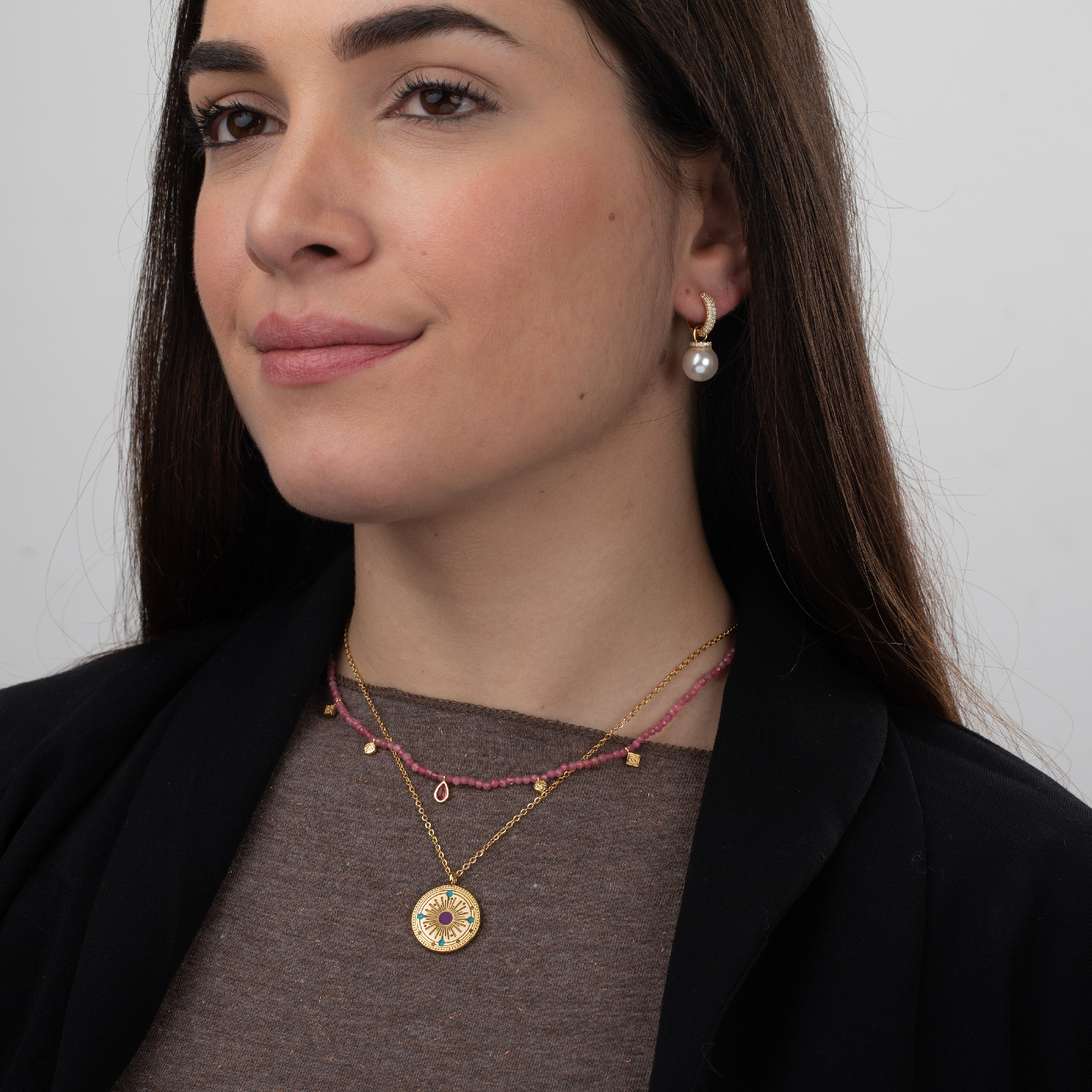 Pendientes Plata Dorada Aro y Cadena Piedras Multicolor