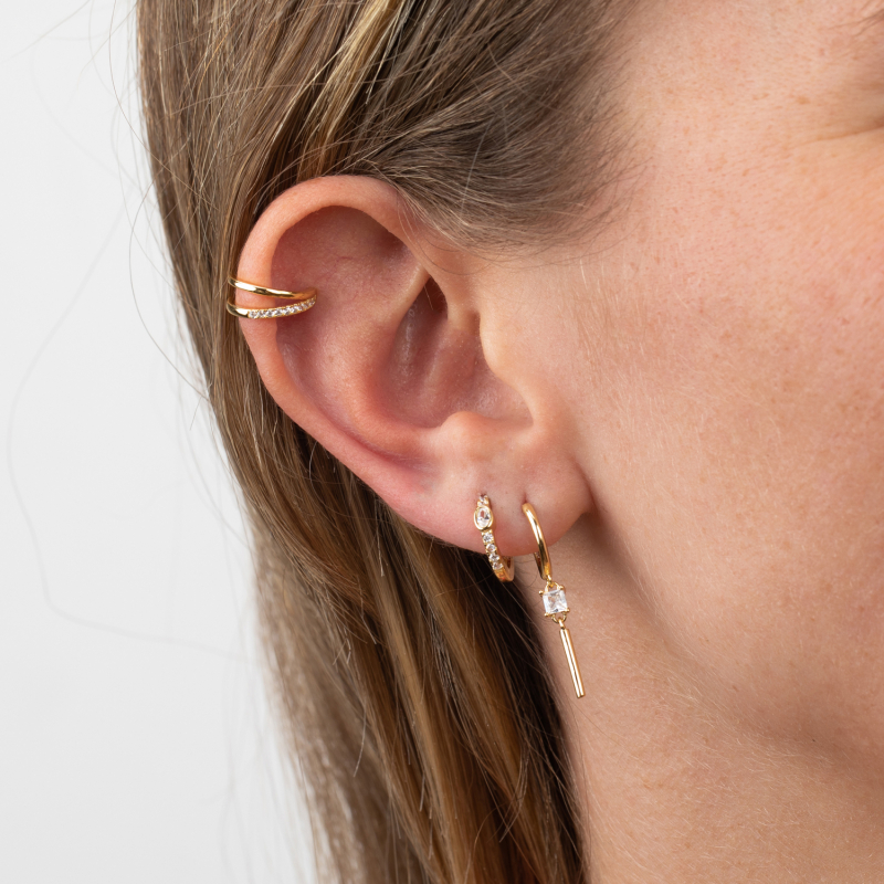 Pendientes Plata Aro Gold Circonitas Rectangulo