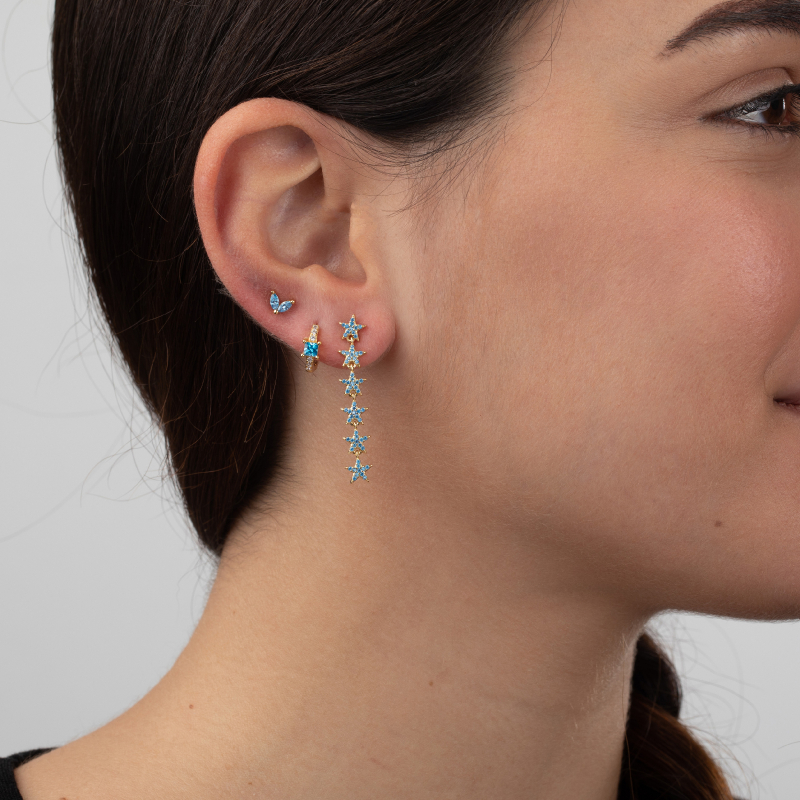 Pendientes Plata línea de Estrellas Aguamarina Gold