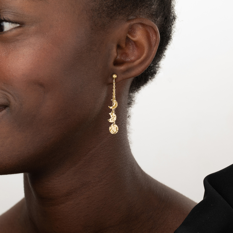 Pendientes Plata Semi Aro Oval con Bola Gold