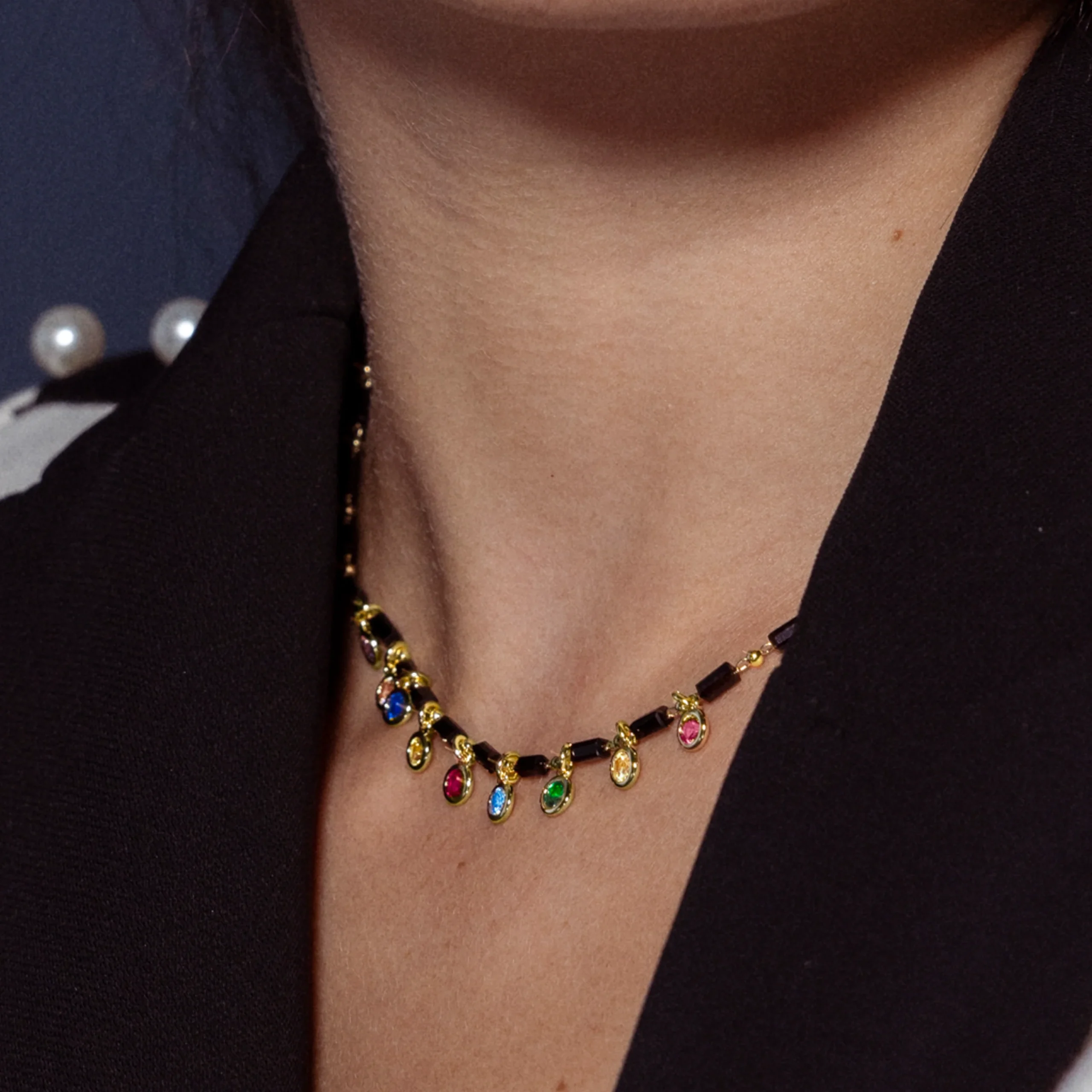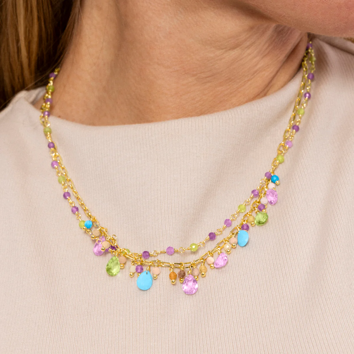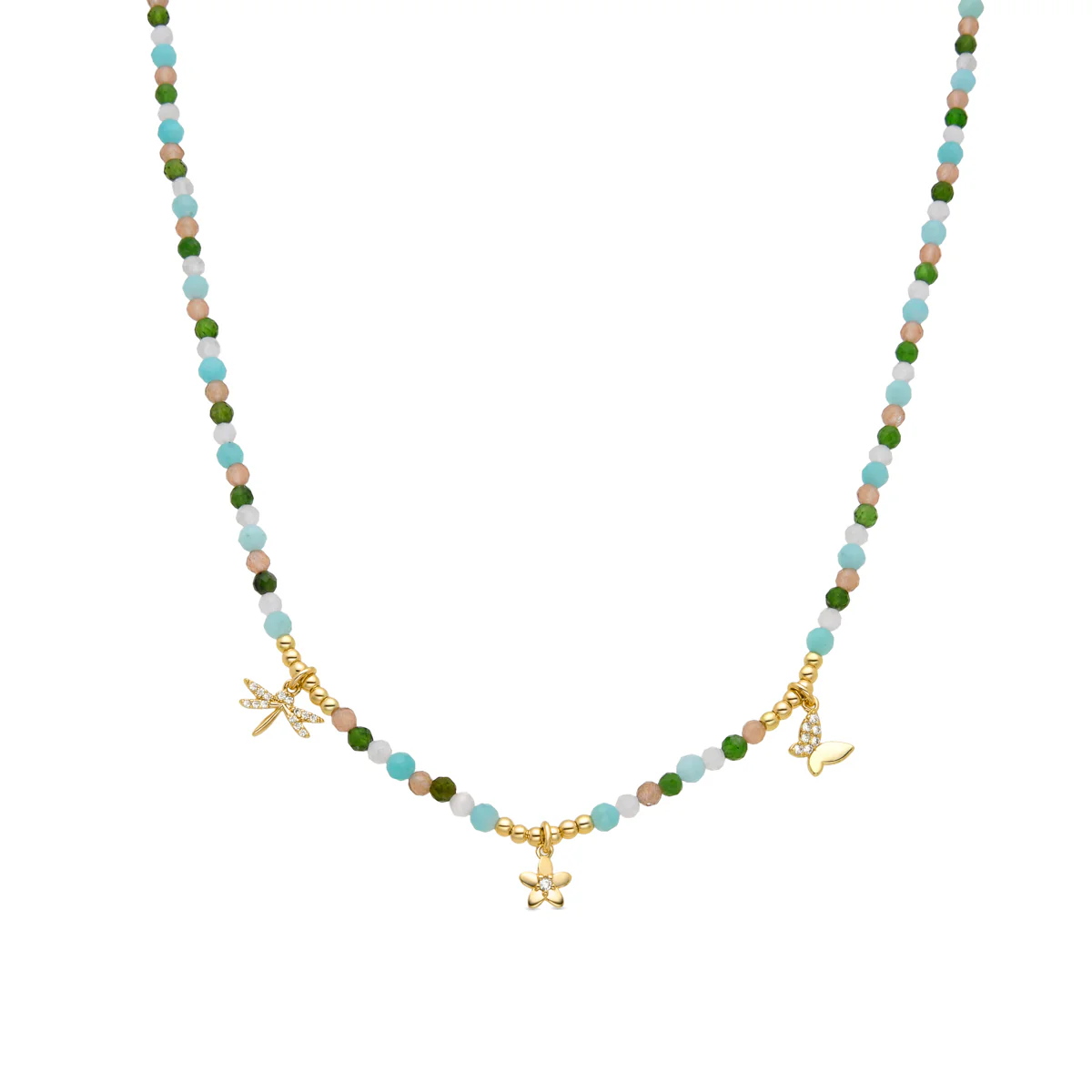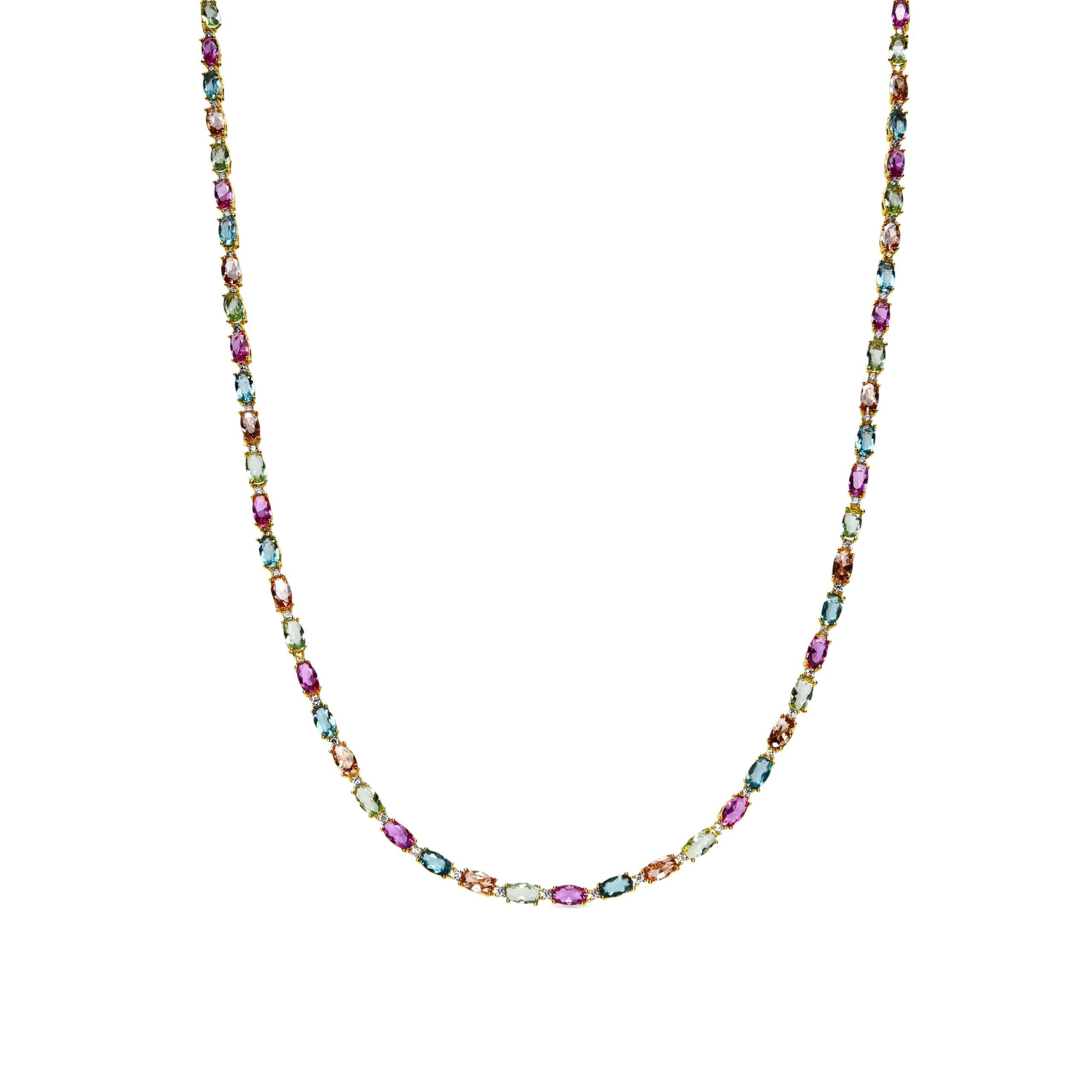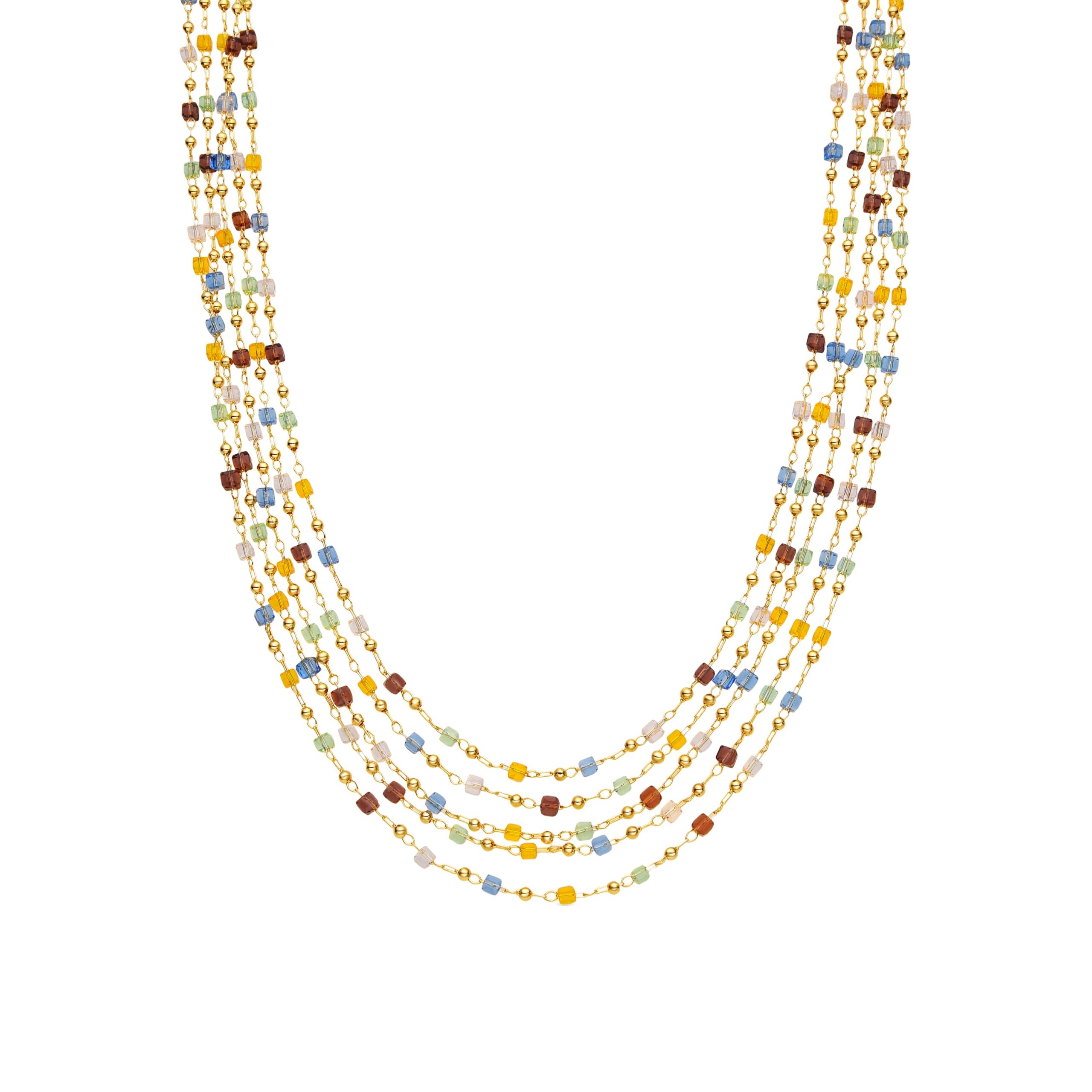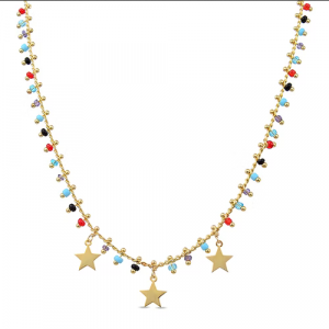 Collar Plata de ley y Cristal Multicolor Acabado Oro Amarillo de 18k Goben