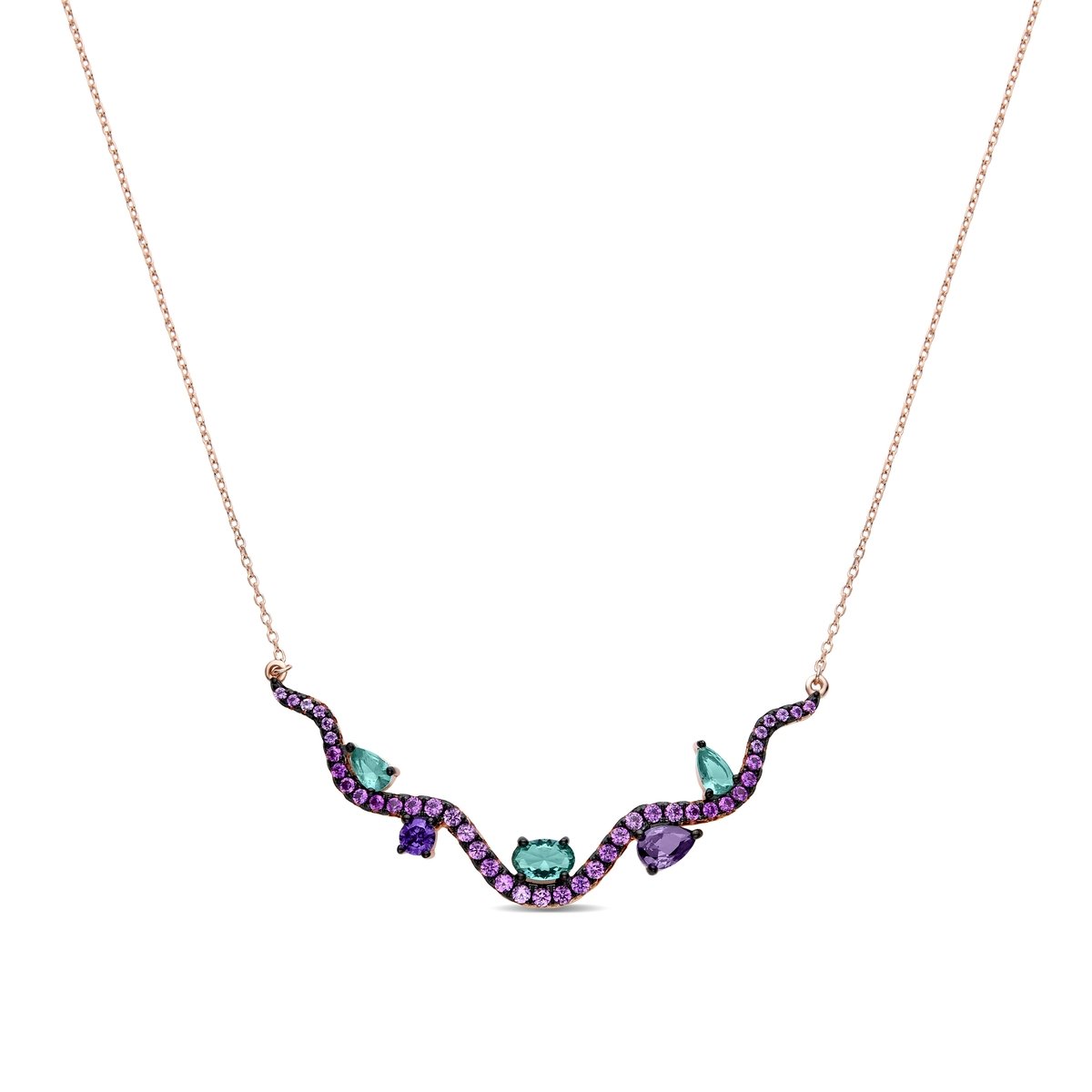 Collar Vasuk PLata de Ley 925 Acabado Oro y Circonitas de Color