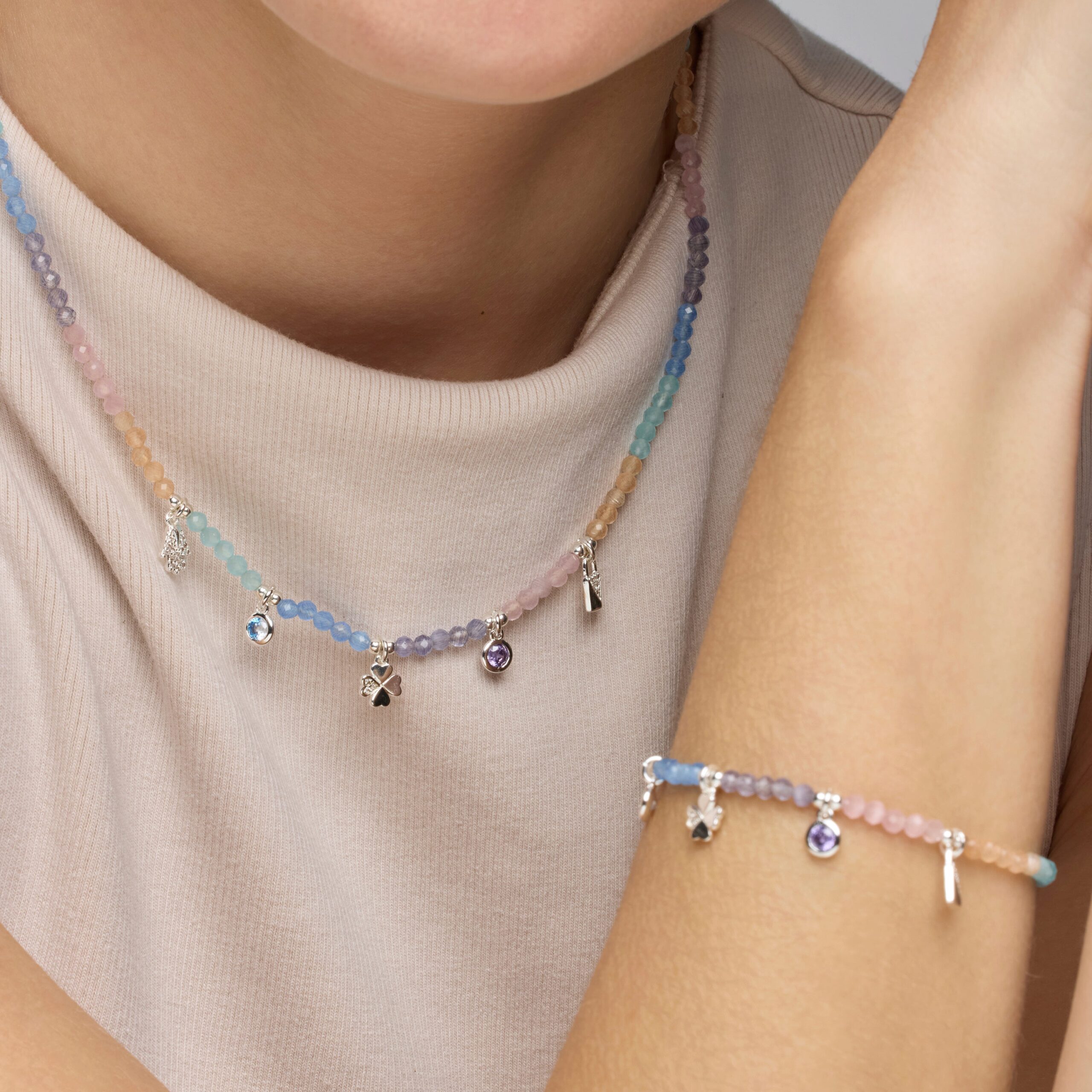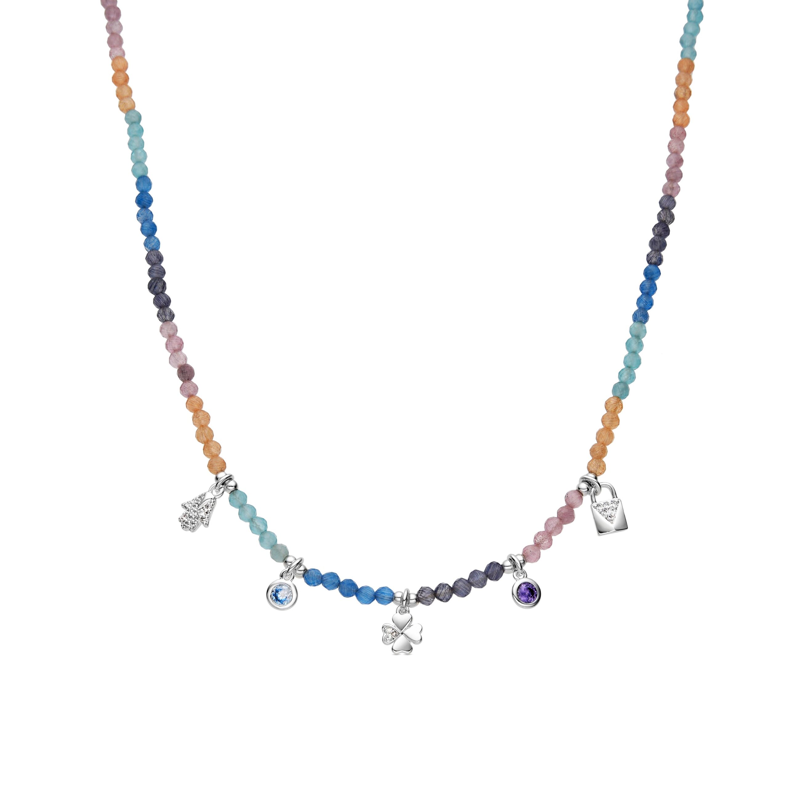 Collar de Plata de Ley 925 y Cristal Multicolor Acabado Rodio Muza