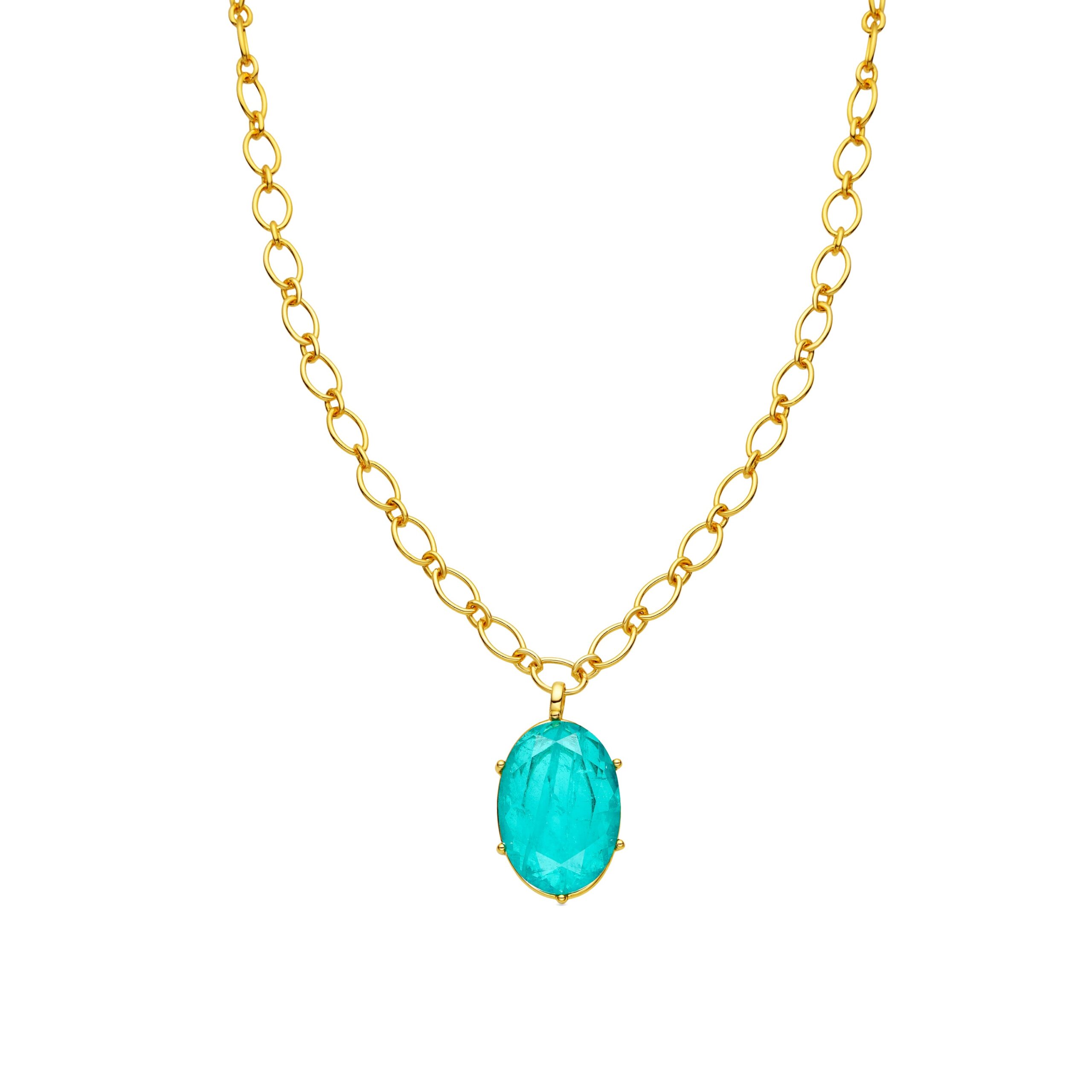 Collar en Plata de ley 925 y Circonita Verde Acabado Oro Amarillo Jadir