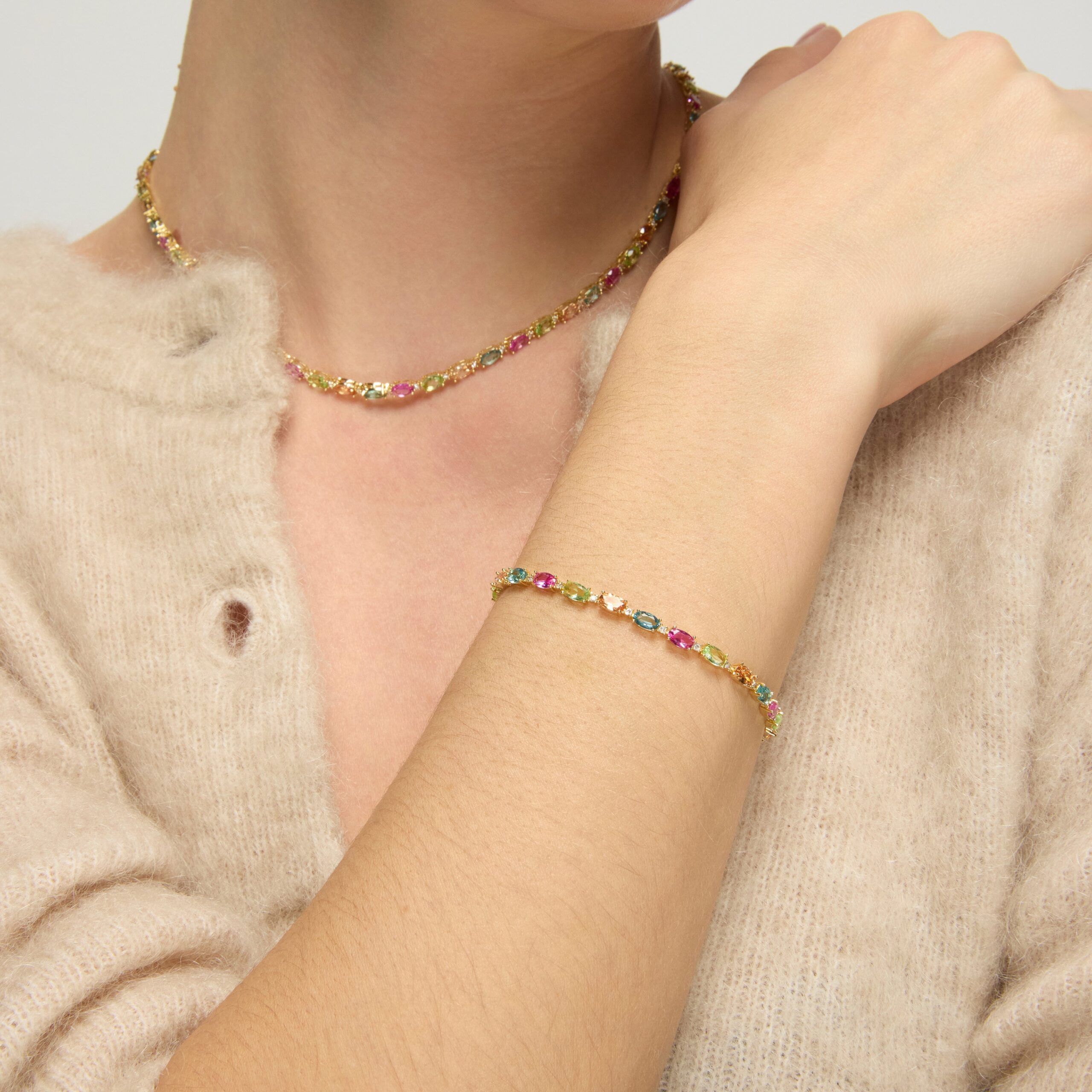 Collar Plata de ley y Circonita Multicolor Acabado Oro Amarillo de 18k Nie