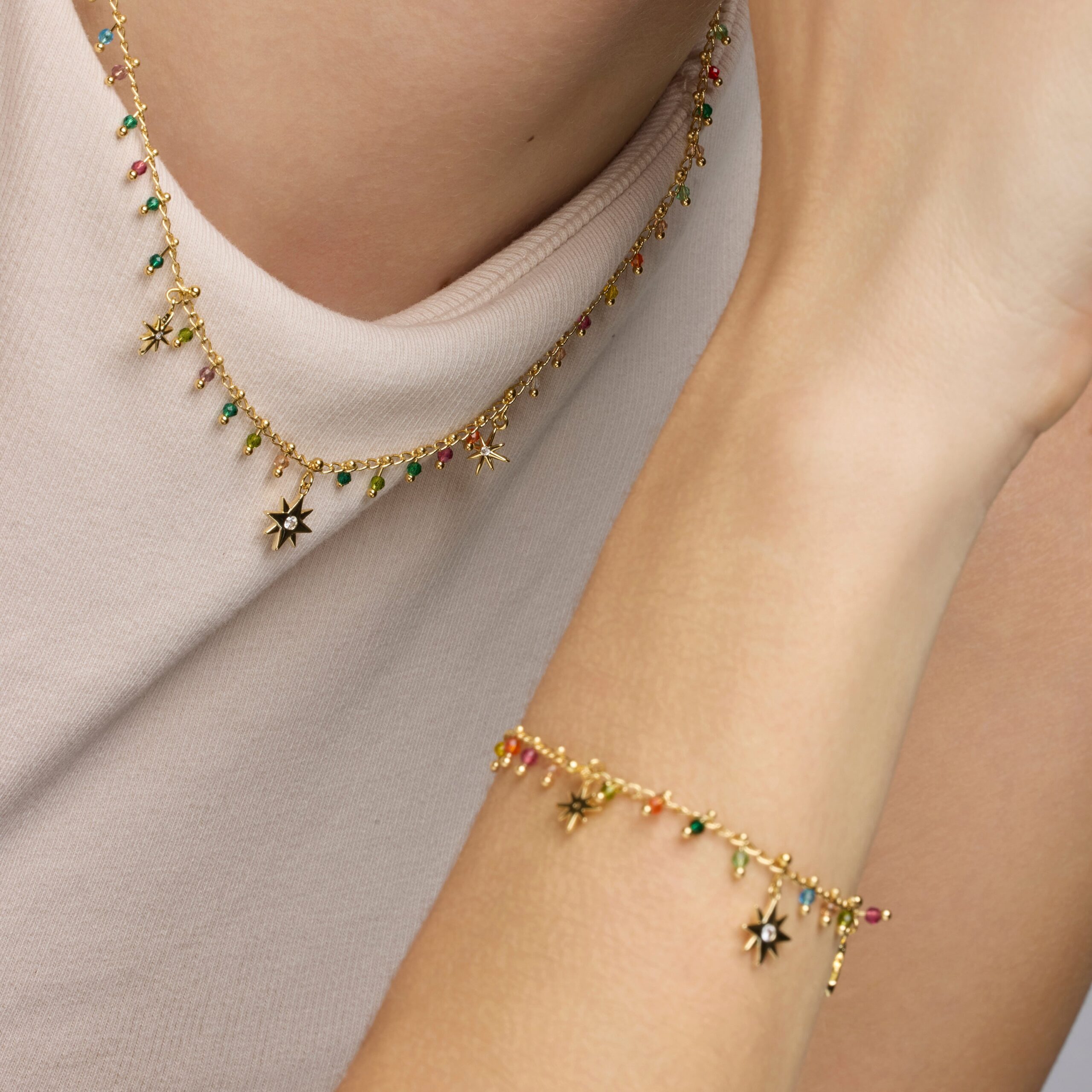 Pulsera Plata de ley y Cristal Multicolor Acabado Oro Amarillo de 18k Huin