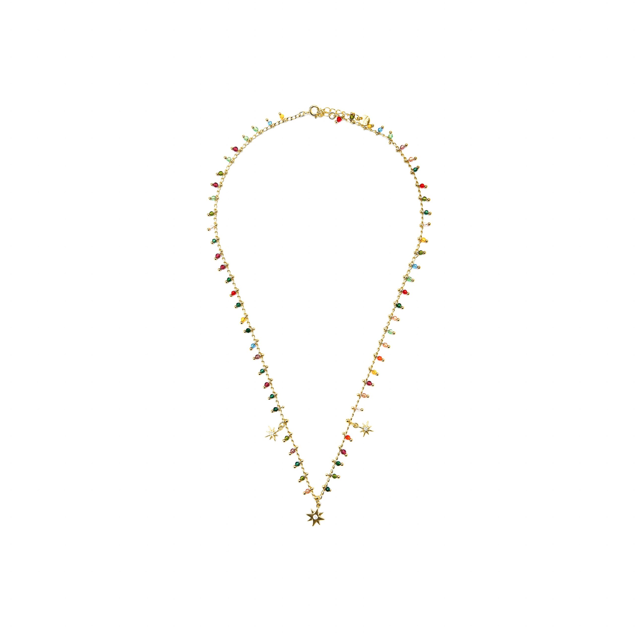 Collar Plata de ley y Cristal Multicolor Acabado Oro Amarillo de 18k Huin