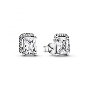 Pendientes de Botón Halo Cuadrado Brillante Plata de Primera Ley 293551C02