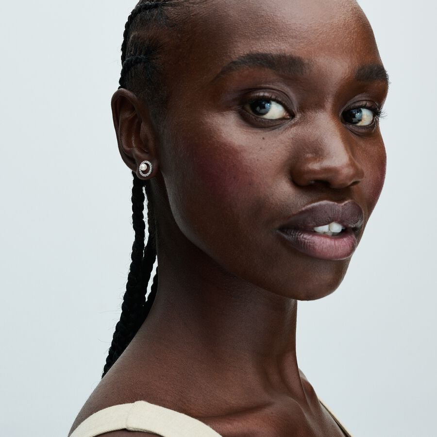 Pendientes de Botón Halo Redondo Brillante 291248C01
