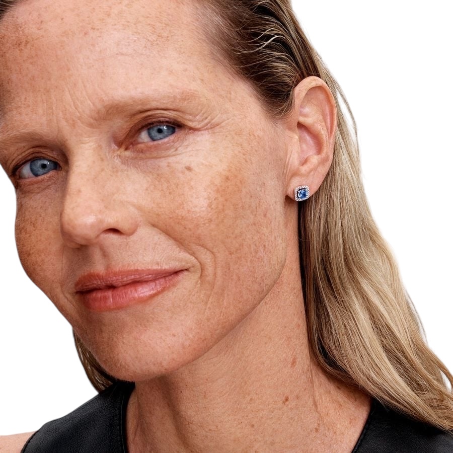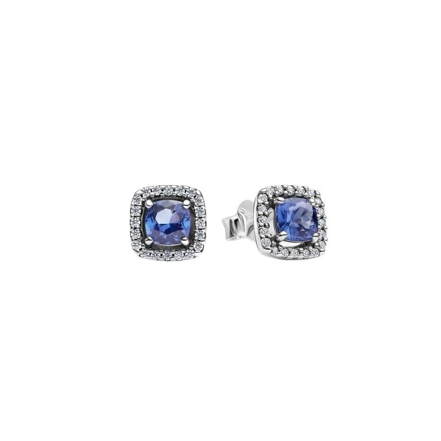 Pendientes de Botón Halo Azul Cuadrado Brillante 293351C01