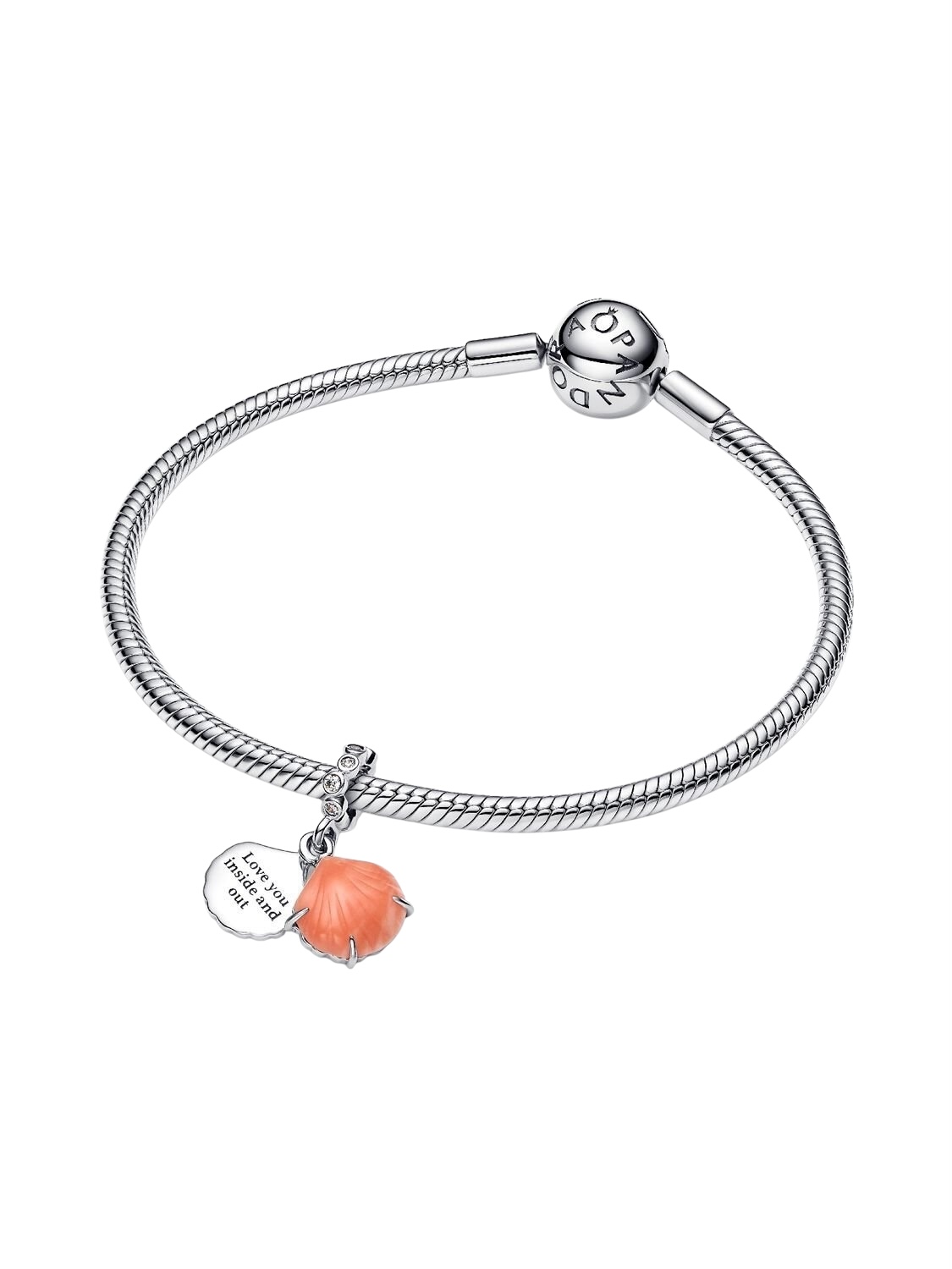 Charm Colgante Doble Concha Color Coral Plata de primera ley 793821C01