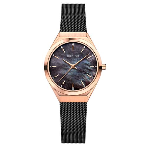 Reloj Bering Mujer Esfera negra de madre perla y brazalete negro 12934-132