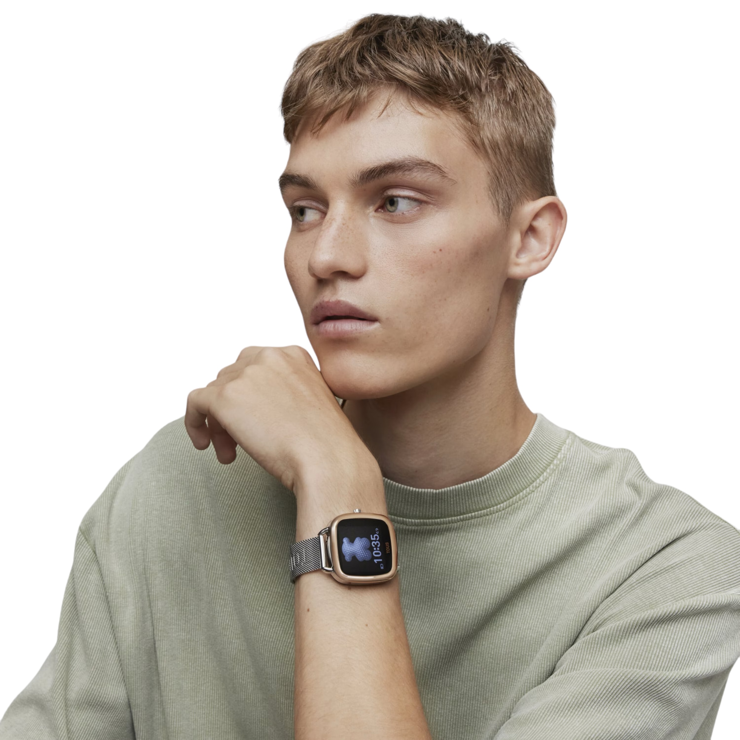 Reloj Rond Connect de Acero IP Dorado Correa Mesh Negra