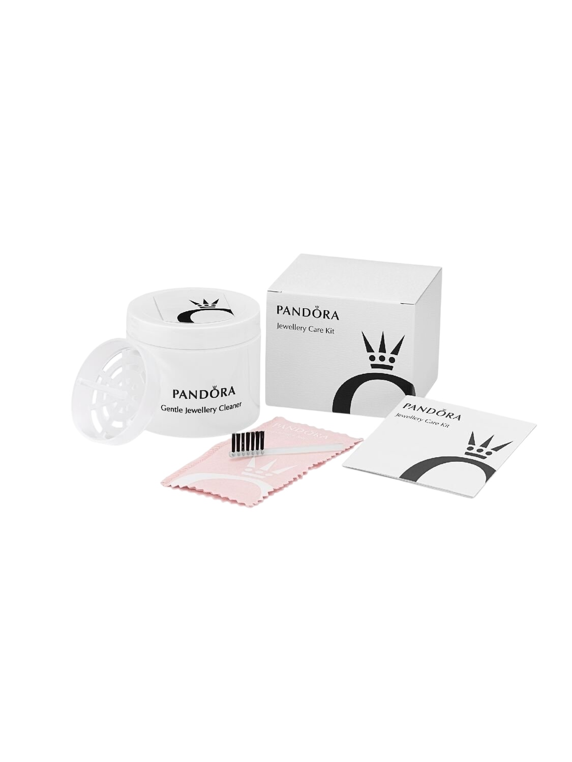 El Care Kit perfecto para cuidar tus joyas Pandora, con instrucciones de uso. El set contiene: Sustancia limpiadora apta para la limpieza de todos los metales de Pandora. Un cepillo suave. Una bandeja de manipulación para usar durante la limpieza. Un paño de limpieza de doble cara. La cara blanca es para plata de ley y el oro de 14k, y la cara rosa para las joyas con un recubrimiento electrolítico en oro o en oro rosa de segunda ley de 14k. Cómo se usa: Introduce la joya en el líquido limpiador durante 2 minutos. Enjuaga con agua tibia y seca. Pule con el paño limpiador Pandora, utilizando la cara blanca para quitar el deslustre y la cara rosa para pulir. En joyas Pandora Rose o con recubrimiento, utiliza solo la cara rosa. Nuestro cepillo limpiador especialmente diseñado es perfecto para quitar la suciedad acumulada en o alrededor de los engastes. Sumérgelo en el limpiador y cepilla con suavidad tu joyería Pandora, utilizando las cerdas suaves para enjabonar la joya de manera que quede limpia y recupere su brillo. Enjuaga con agua tibia y seca. Pule con el paño limpiador Pandora. El Líquido Limpiador está especialmente formulado para limpiar de manera suave y efectiva la joyería Pandora. Indicaciones: Introduce la joya en el líquido limpiador durante 2 minutos. Enjuaga c.on cuidado y seca. Pule con el paño limpiador Pan