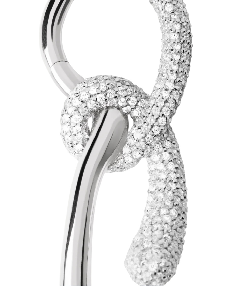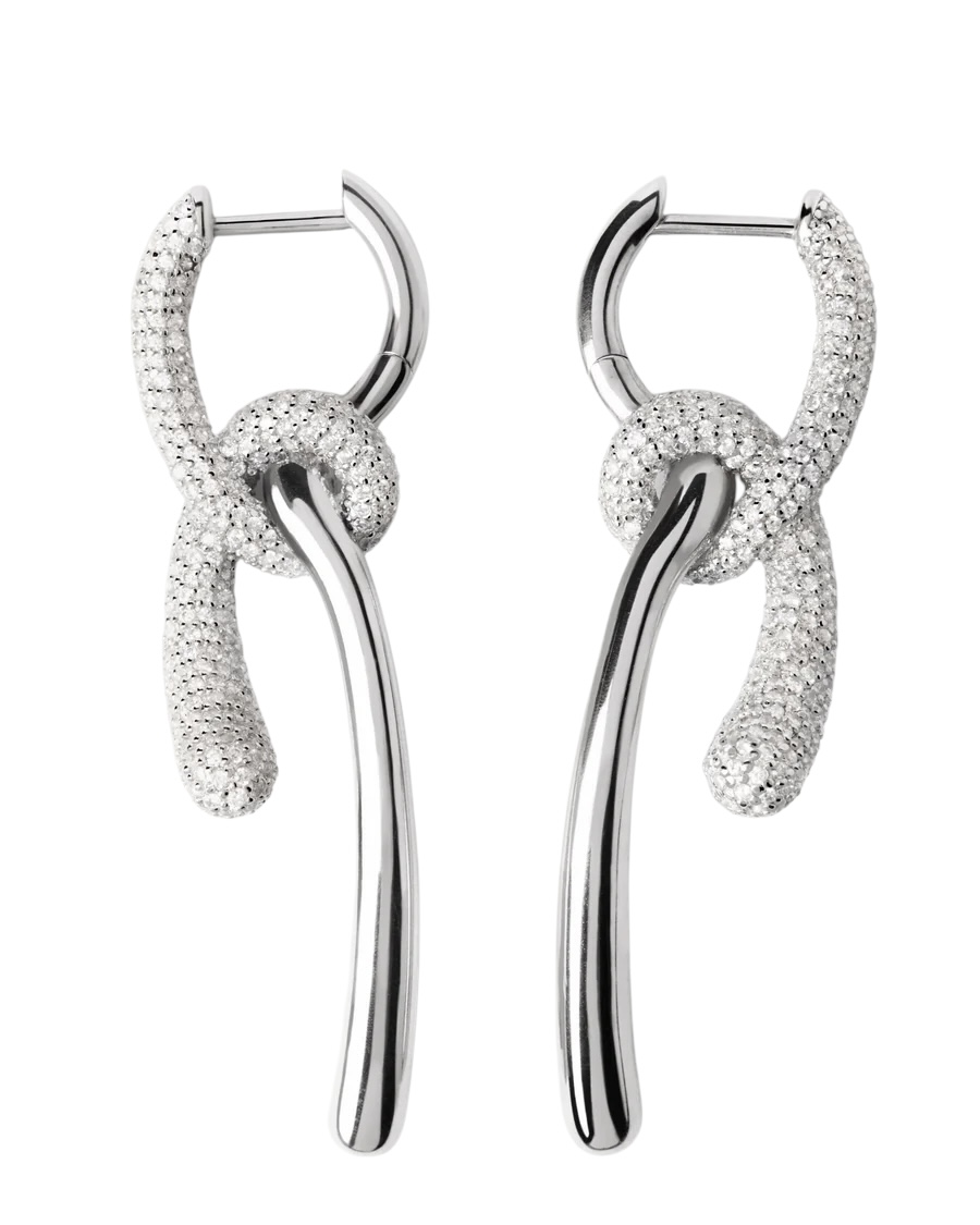 Aros asimétricos de plata con colgante de nudo fluido engastado con pavé de circonitas