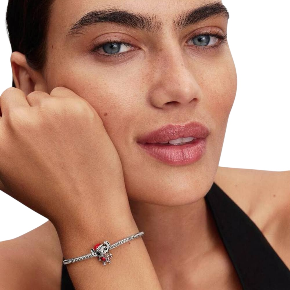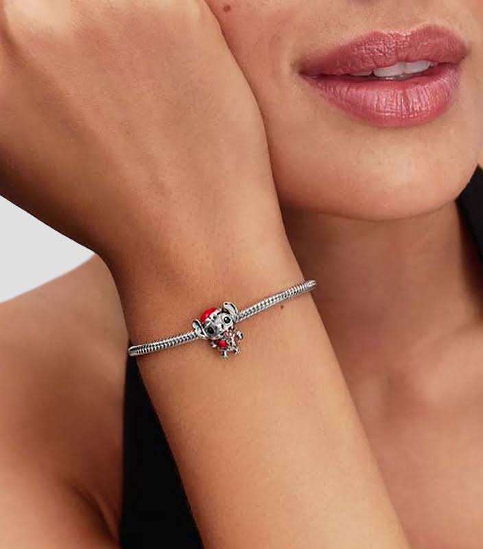 Celebra a un alegre pícaro con nuestro charm de Stitch navideño de Disney en plata de primera ley. Este charm, que se presenta con detalles esmaltados y una galleta de jengibre, aportará un toque divertido a cualquier outfit navideño.