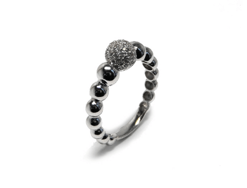 Anillo oro blanco bolas en disminución y pave central de diamantes 0.36cts.