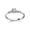 Un clásico de la joyería, anillo espectacular, fabricado en Oro Blanco de 18kt con un diamante en cuatro garras, talla brillante y cercado a los lados con otros más pequeños, con un total de 0,21 quilates. El diamante principal está montado en garras para tener más luminosidad. El anillo viene acompañado de certificado de calidad y caja perfecta para regalo.