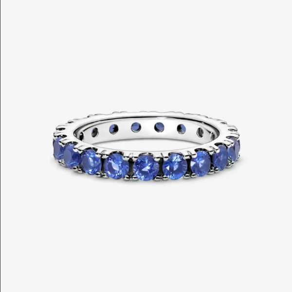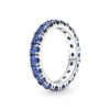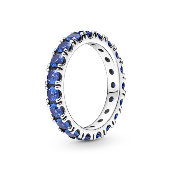 Anillo Eternity Brillante. Acabado a mano en plata de primera ley, este anillo Eternity se ha embellecido con brillantes cristales de color azul. Este diseño destacará llevándolo tanto solo como combinado con otros anillos. Acompáñalo de alianzas en tonos similares para crear un look en un solo color o combínalo con otros metales para crear una combinación que destaque. Este anillo se ha diseñado para convertirse en una joya esencial durante los próximos años.