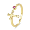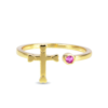 Anillo en plata de ley abierto con baño de oro de 18k y circonita turmalina rosa
