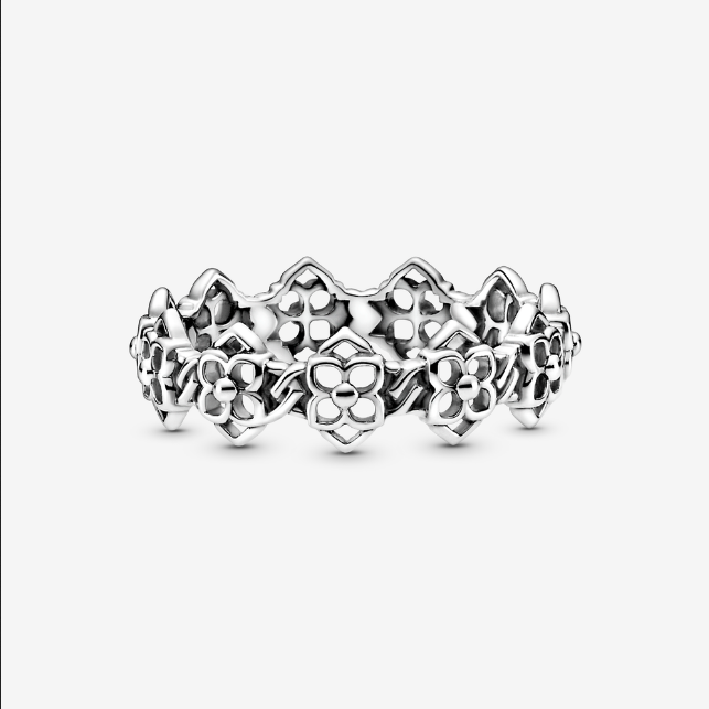Anillo en plata de ley Pétalos de Rosa. Acabada a mano en plata de primera ley, este diseño presenta sencillos contornos de rosas con pétalos entrecruzados. Cada flor se ha embellecido con una esfera pulida en el centro. Lleva este anilo con otras piezas en plata de primera ley para crear un look en un solo tono o combínala con anillos de Pandora Timeless para crear una combinación que atraiga las miradas. También puedes regalar esta alianza cargada de detalles alguien especial como símbolo de tu amor.