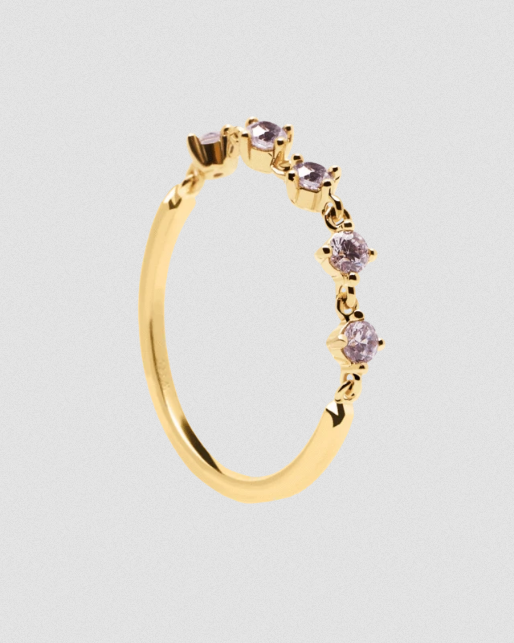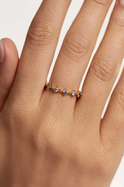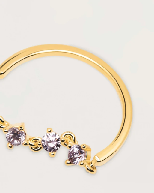 Material: Plata de Ley 925 Acabado: Baño en Oro de 18k Piedras: Circonita Lavanda Peso: 1 g