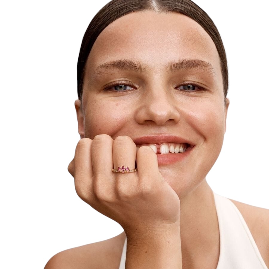 Sé valiente como Rapunzel de Disney. Nuestro Anillo Princesa Rapunzel de Disney captura su esencia aventurera en un encantador diseño. Acabado a mano con un cálido recubrimiento de oro de 14k, se presenta con tres gemas con forma de pera de color púrpura, detalles de filigrana y brillante pavé de gemas transparentes a lo largo del eje del anillo. Póntelo como representación del valor, la creatividad y el espíritu aventurero de Rapunzel.