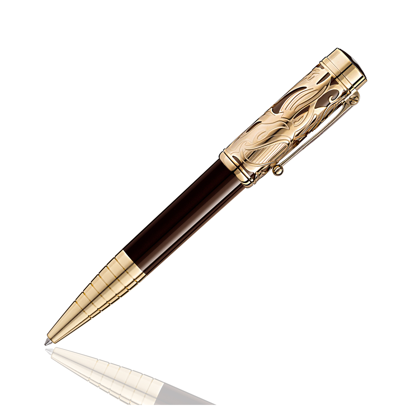 Bolígrafo Montblanc Carlo Collodi 106643 serie limitada y numerada. Esta Edición de Escritores se inspira principalmente en el libro de Pinocho. Su extremo redondeado está inspirado en la nariz de Pinocho. El capuchón reproduce algunos personajes del cuento y el clip lleva reproducciones de tornillos como las extremidades de la marioneta.