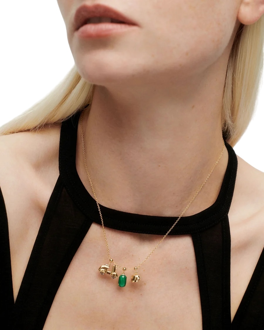 Mini charm moto engastado con circonita blanca para personalizar collar o pulsera