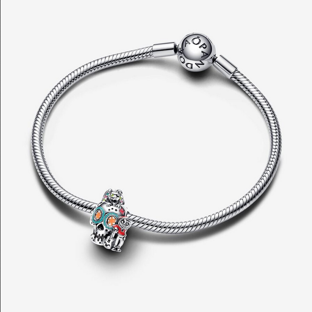 Celebra el poder de la familia con el charm Charm que Brilla en la Oscuridad Calavera de Miguel y Dante de Coco de Disney Pixar. Fabricado en plata de primera ley, este charm presenta a los queridos personajes Dante y Miguel de la película Coco de Disney y Pixar. Los coloridos detalles esmaltados, algunos de los cuales brillan en la oscuridad, sobresalen de la base de plata, que se ha decorado con detalles recortados, ranuras y grabados impresos. Para los amantes de Disney y coleccionistas de charms por igual, este charm de una calavera es un tributo al amor y las tradiciones que nos conectan a través de generaciones.