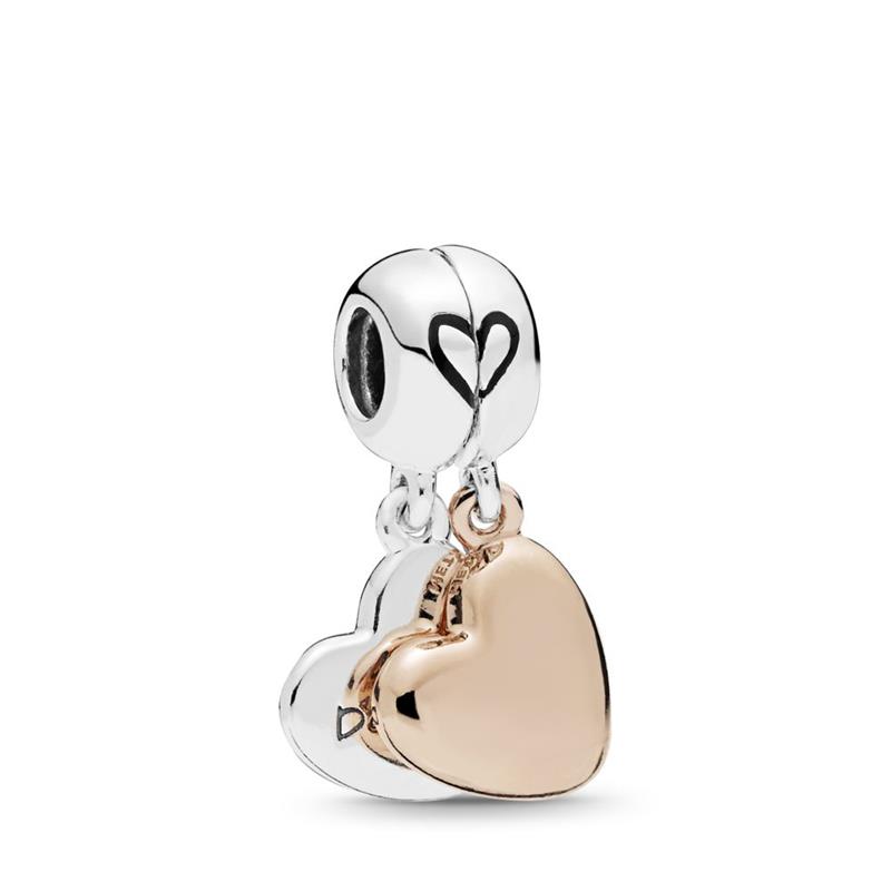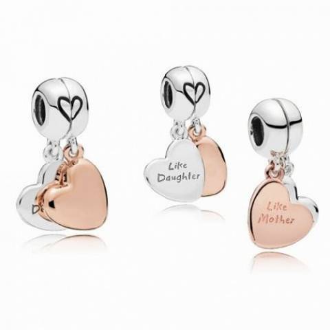 Charm colgante Doble en plata de ley y pandora rose con grabado «like daughter, like mother»