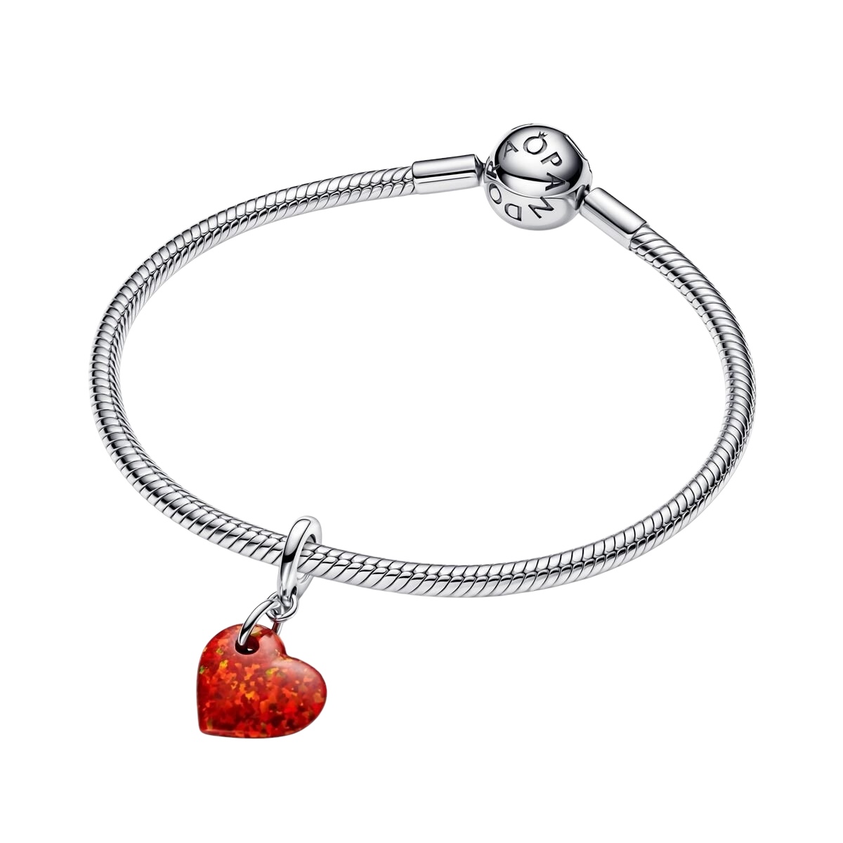Da a tu look un toque de color llamativo. Este charm acabado a mano en plata de primera ley se presenta con un ópalo creado en laboratorio de color rojo con forma de corazón que refulge con un fascinante espectro de colores. El corazón cuelga en un ángulo elegante aportando movimiento y brillo en cada gesto. Perfecto para el Día de San Valentín, o para cualquier ocasión, combínalo con otros diseños de plata de primera ley para crear un look romántico o combínalo con diseños con recubrimiento de oro de 14k para conseguir un look más moderno.