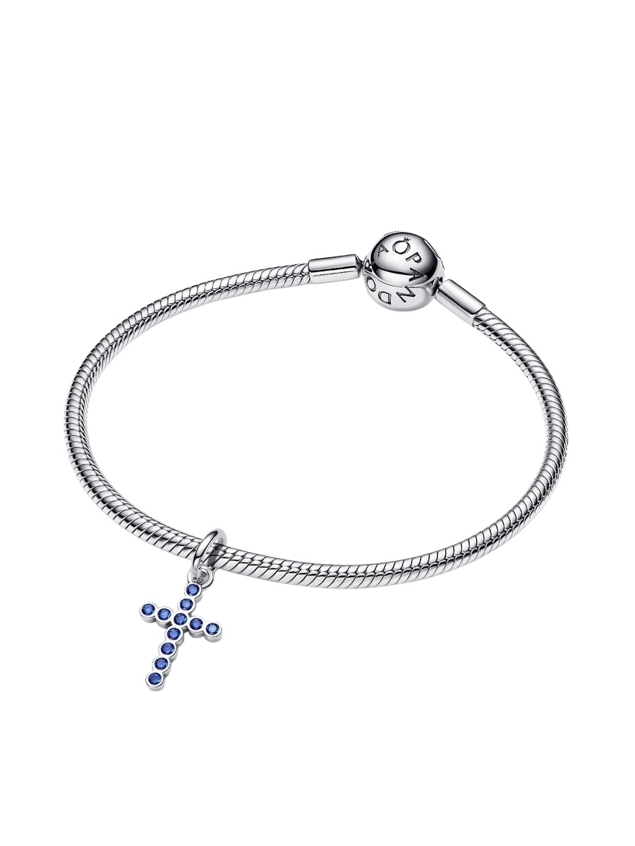 La fe toma forma con este símbolo universal de esperanza y amor. Cristales sintéticos azules forman una cruz brillante engastada en plata de ley, una joya especial, perfecta para lucir sola o combinada con otras.