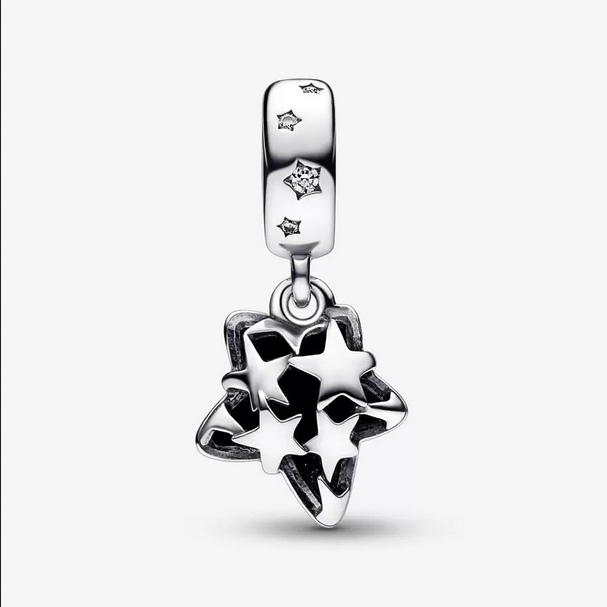 Captura las maravillas de una noche clara y estrellada con el Charm colgante de Murano Estrella de Galaxia Celestial. Este charm colgante de plata de ley tiene una gema única en forma de estrella asimétrica creada con cristal de Murano, con un brillante efecto estelar azul intenso. Las estrellas en filigrana de plata de ley aportan una capa adicional de adornos al reverso del charm, y el gancho está decorado con circonitas cúbicas transparentes, engastadas dentro de formas de estrellas impresas. Ponlo en tu pulsera o portacharms para añadir un toque elegante a tu estilo.