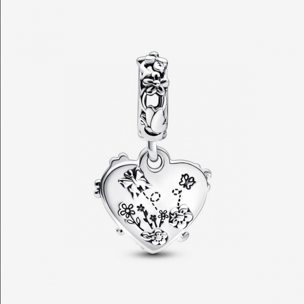 Charm Colgante Triple Corazón Arcoiris en Dos Tonos, Mariposa y Paz 782572C01