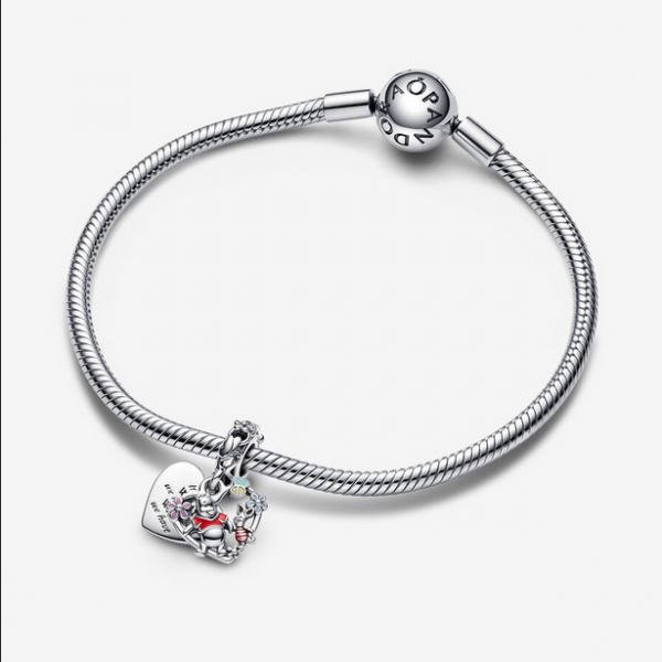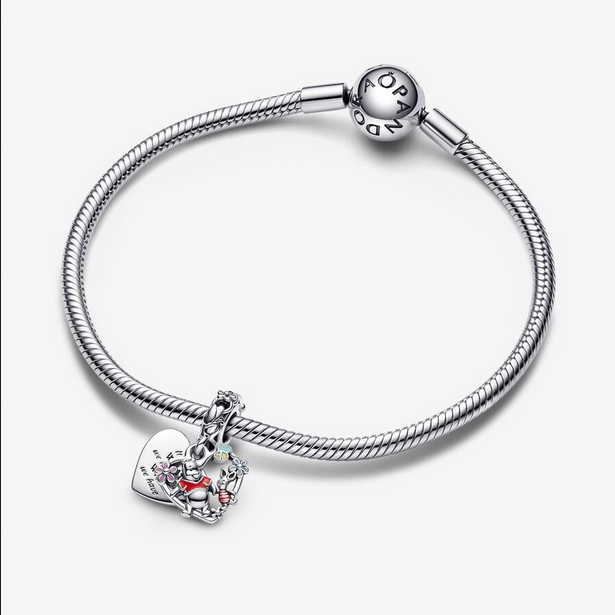 Revive tus recuerdos favoritos con el Charm Colgante Doble Winnie the Pooh y Piglet de Disney, en plata de primera ley, que representa a los mejores amigos del Bosque de los Cien Acres. Los dos amigos caminan agarrados de la mano a través de un idílico paisaje con abejas y flores con detalles de esmalte en un marco en forma de corazón. Otro disco con forma de corazón sirve de fondo y se ha decorado con el mensaje: «It’s not WHAT we have but WHO we have» (No se trata de QUÉ tenemos sino de QUIÉN tenemos). Llévalo para acordarte de alguien especial o regálalo como símbolo de amor y amistad.