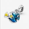 Canaliza tu optimismo interior con Dory de Pixar. Este charm colgante en plata de primera ley presenta al querido pez olvidadizo de Buscando a Nemo que cobra vida a través de esmalte aplicado a mano en colores azul, amarillo y negro, embellecido con detalles en relieve en sus aletas y con característica sonrisa. La cola articulada puede moverse de lado a lado como si estuviera nadando realmente. Añade este charm tus favoritos como recordatorio de que debes mantener tus metas. ¡Nunca olvides mirar el lado brillante de la vida!