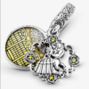 Charm Bella y Bestia dentro de un marco de filigrana rodeado de rosas decoradas con cristales artificiales de color amarillo. El salón de baile está representado en el disco que actúa de fondo de la pareja, que se ha decorado con esmalte de color amarillo aplicado a mano. La anilla se ha decorado con detalles de rosas en 3D. Como homenaje al amor imperfecto pero mágico existente entre la Bella y la Bestia, este charm colgante presenta la inscripción “Beauty is found Within” (La belleza está en el interior).