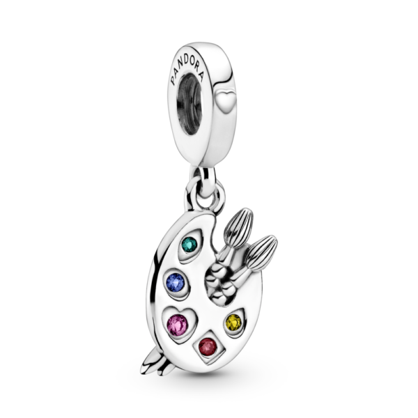 Charm Colgante Triple Corazón Arcoiris en Dos Tonos, Mariposa y Paz 782572C01