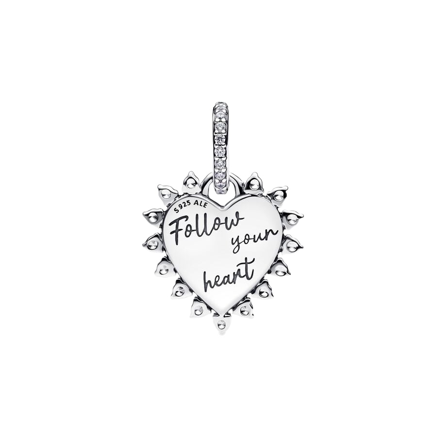 Dale un giro divertido a tu look con el Charm Colgante Flecha Corazón Giratorio. Este charm creado en plata de primera ley se ha embellecido con un ópalo creado en laboratorio de color rojo con forma de corazón enmarcado por relucientes circonitas cúbicas transparentes. La flecha de plata de primera ley gira y en el reverso del corazón se ha grabado la inscripción «Follow your heart» (Escucha a tu corazón, en español). Las gemas engastadas en pavé que decoran la anilla aportan la cantidad justa de brillo. Lleva este charm en una pulsera o collar como recordatorio de que debes escuchar a tu corazón, todos los días.