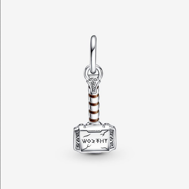 Charm Colgante Martillo de Thor los Vengadores de Marvel y comparte con el mundo tu amor por el universo de Marvel. Acabado a mano en plata de primera ley, el martillo de Thor cobra vida con el esmalte de color marrón que decora el agarre del martillo, las marcas grabadas y símbolos de runas al estilo de Asgard. Uno de los laterales del martillo lleva la inscripción «Worthy» (Digno) como recordatorio de la fuente de poder de Thor. Añade este charm junto a otros de tus héroes favoritos a nuestra Pulsera Pandora Moments con Cierre Logo Los Vengadores de Marvel.