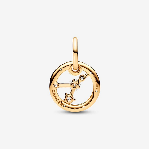 Deja que las estrellas guíen tu look con el Charm Colgante Zodiaco Cáncer. El colgante se ha creado en nuestra aleación única de metales con un recubrimiento en oro de segunda ley de 14k y se presenta con un marco exterior circular dornado con brillantes circonitas cúbicas transparentes y la forma del signo del zodiaco cáncer en su interior. En la parte trasera se ha grabado «Cáncer». Conocidas por su dualidad y profundidad emocional, ten por seguro que las personas Cáncer de tu vida serán siempre muy intuitivas y enriquecedoras. Lleva este charm colgante de Pandora Moments como símbolo de la fortaleza de tu propio signo del zodiaco o regálaselo como muestra de aprecio a una persona cáncer de tu vida.