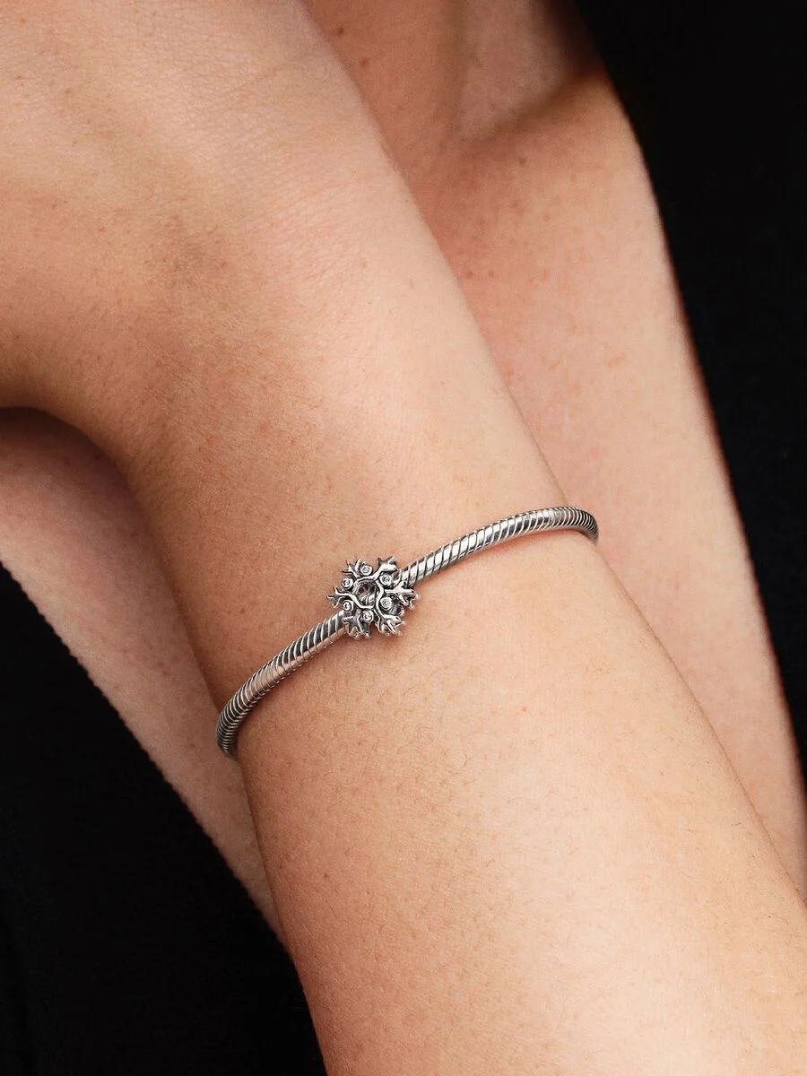 Celebra la magia del invierno con el Charm Copo de Nieve en filigrana. Fabricado en plata de primera ley con brillantes circonitas cúbicas, captura la delicada belleza de la cencellada. Llévalos solo o combínalo para crear un look brillante de temporada.