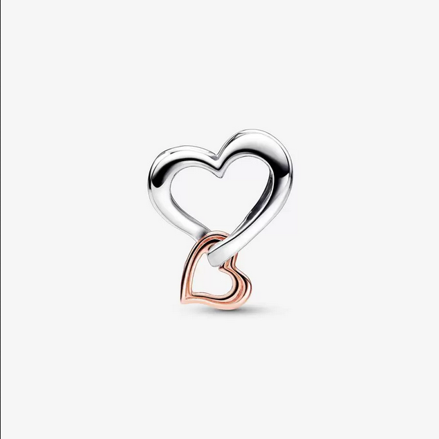 Inspirado en un encuentro de motivos de corazón e infinito, el Charm Corazón Infinito en Filigrana en Dos Tonos es un homenaje al amor infinito de la familia. La parte superior del charm es un corazón calado de plata de ley con una forma orgánica y ondulada; a través de él, un corazón más pequeño con un recubrimiento de oro rosa de segunda ley de 14k, que representa el vínculo eterno con la familia. El corazón de plata de ley tiene dos símbolos del infinito y la inscripción «Family is love» (La familia es amor). Llévalo contigo como recordatorio de las personas que están más cerca de tu corazón.